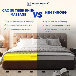 - Nệm cao su thiên nhiên Massage Trung Nguyên là sự lựa chọn lý tưởng nhờ những ưu điểm khó tìm thấy ở dòng nệm khác: